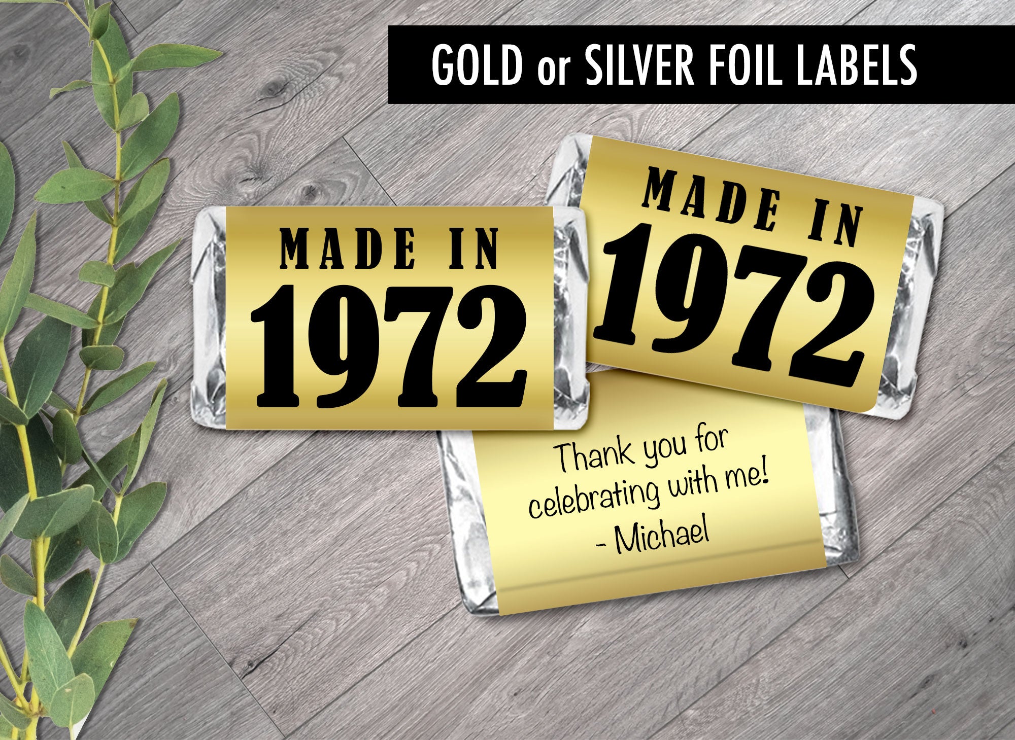 Set of 42 - Made In, any year, Personalized Gold or Silver Metallic Foil Labels